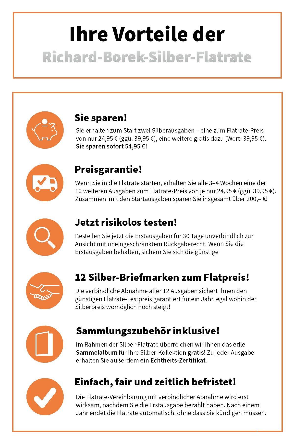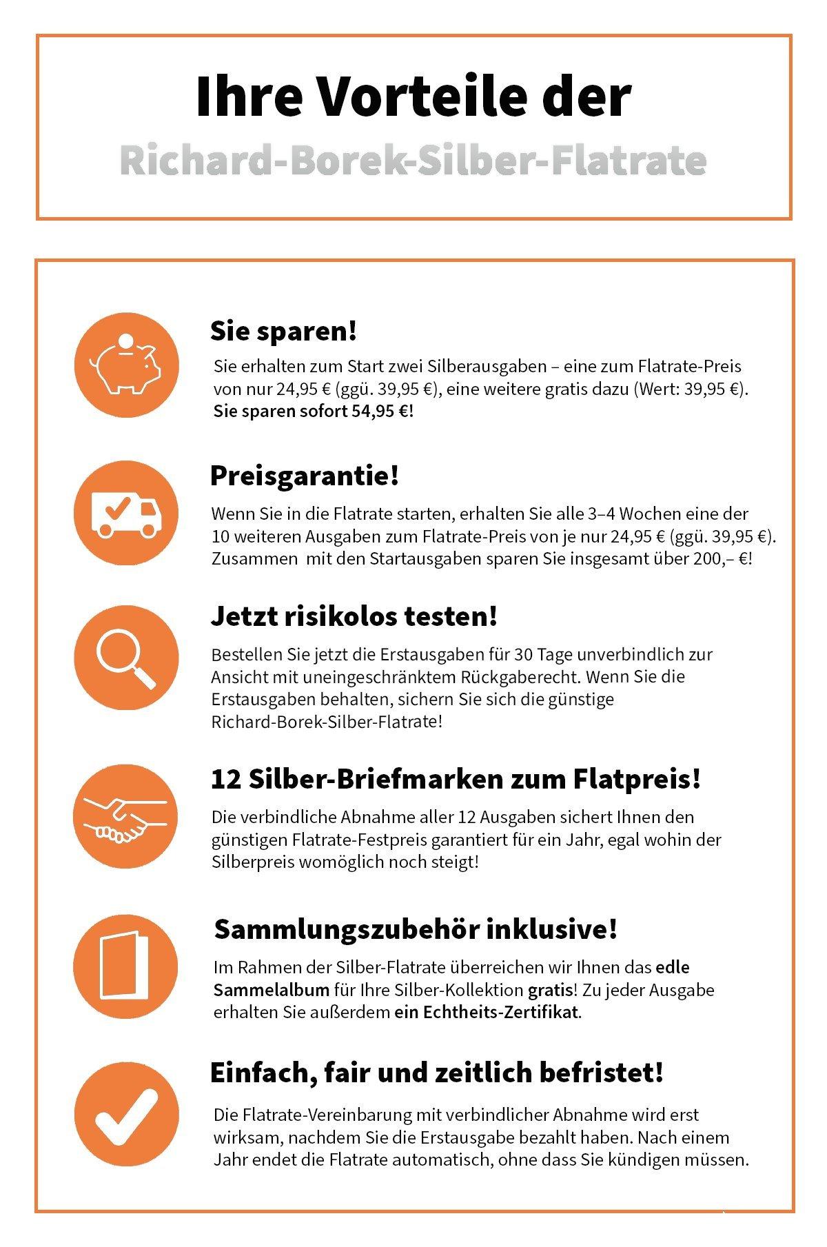 Angesichts der unsicheren Zeiten, in denen wir leben, gewinnt Silber als wertbeständiges Edelmetall an Bedeutung. Dank der exklusiven Silber-Flatrate sichern Sie sich für ein volles Jahr Ihre Niedrigpreis-Garantie, egal wie hoch der Marktpreis auch steigt. Sie bezahlen für jede Ausgabe nur 24,95 € (statt regulär 39,95 €).