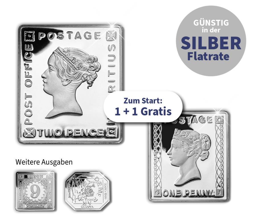Starten Sie noch heute in Ihre Kollektion der zwölf berühmtesten und wertvollsten Briefmarken aller Zeiten in reinem Silber und profitieren Sie ein Jahr lang vom garantierten Flatrate-Preis! Die Auslieferung erfolgt ab Januar 2026.